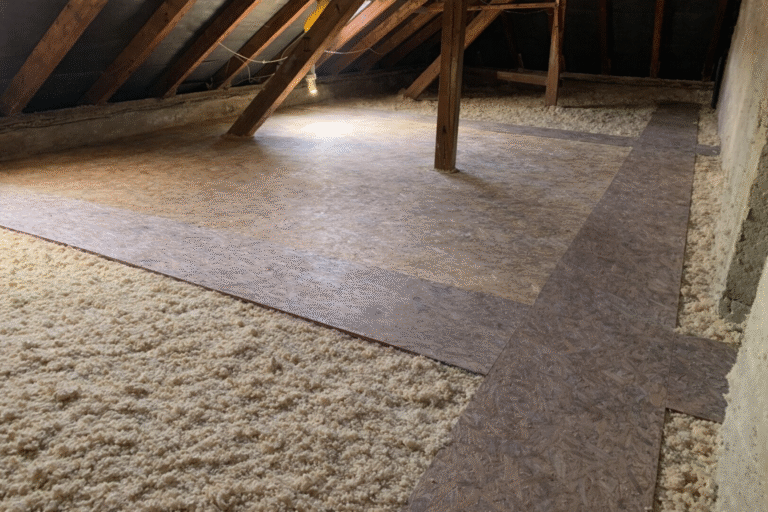 Pochozí lávka a bednění z latí a OSB desek jsou důležitými prvky při aplikaci foukané izolace, zejména v podkroví nebo půdních prostorech.